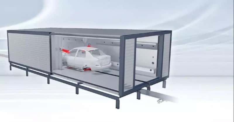 汽车车身通过无滑道的传送,节约了能源,提高了涂漆工艺的灵活性。