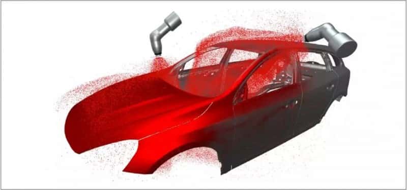 在自编程涂漆室的情况中,漆滴的轨迹是利用多个物理涂漆模型通过计算得到的—图中以Volvo V 60 车身为例。