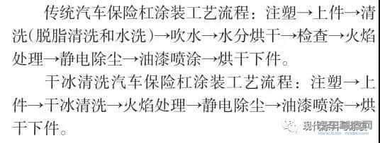 相比传统工艺,保险杆涂装工艺中,干冰清洗可取代传统工艺中的前处理、吹水、水分烘干、强冷等工艺。目前国内外多个保险杠线,比如宝马、延峰彼欧等,都成功的应用该技术,且运用成熟、稳定,满足客户产品质量需求的同时,为相关产业带来极大的附加好处。