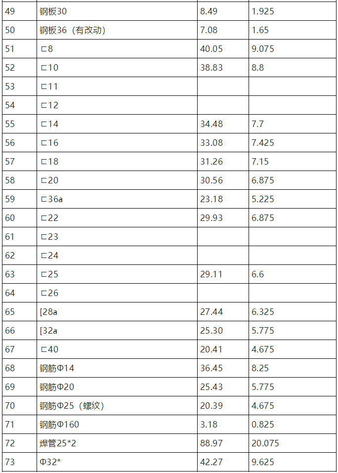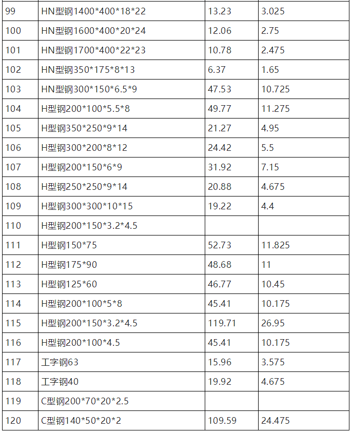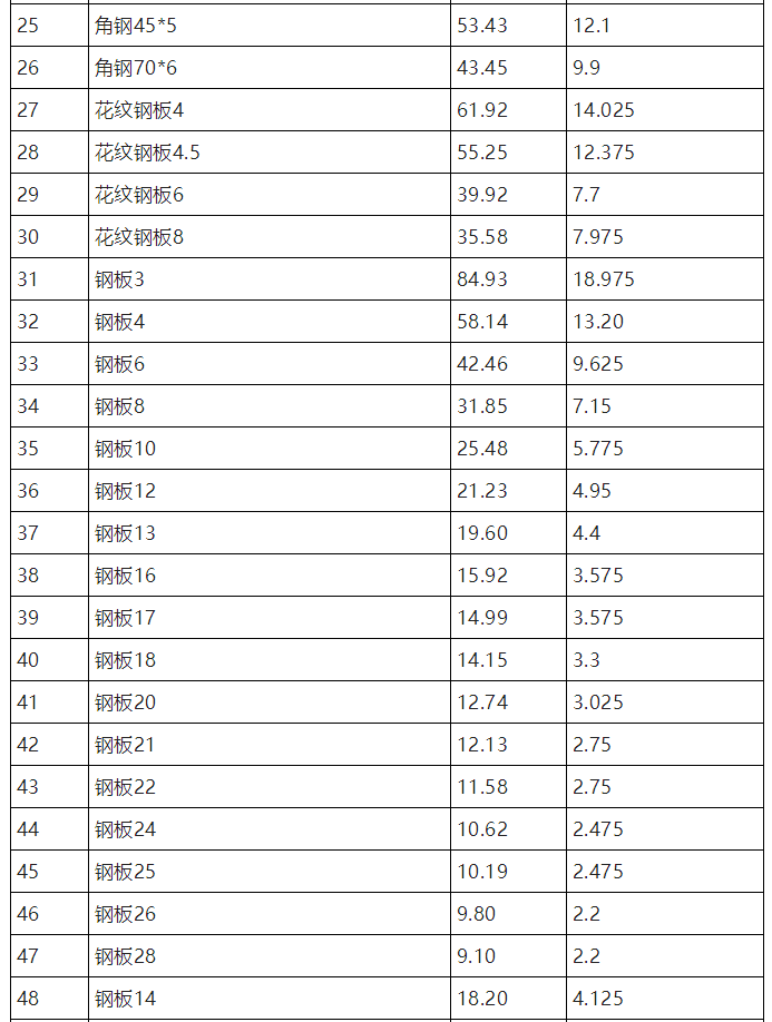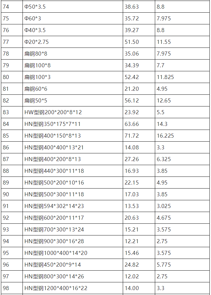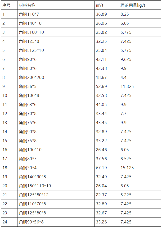 下表以环氧富锌底漆为例,列出一吨钢结构表面积列表及环氧富锌底漆用量(漆膜厚度以40μm/道)